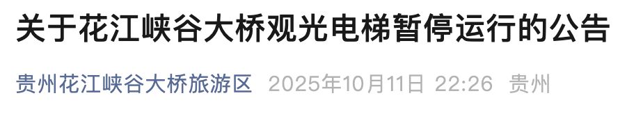 关于花江峡谷大桥观光电梯暂停运行的公告秒配网